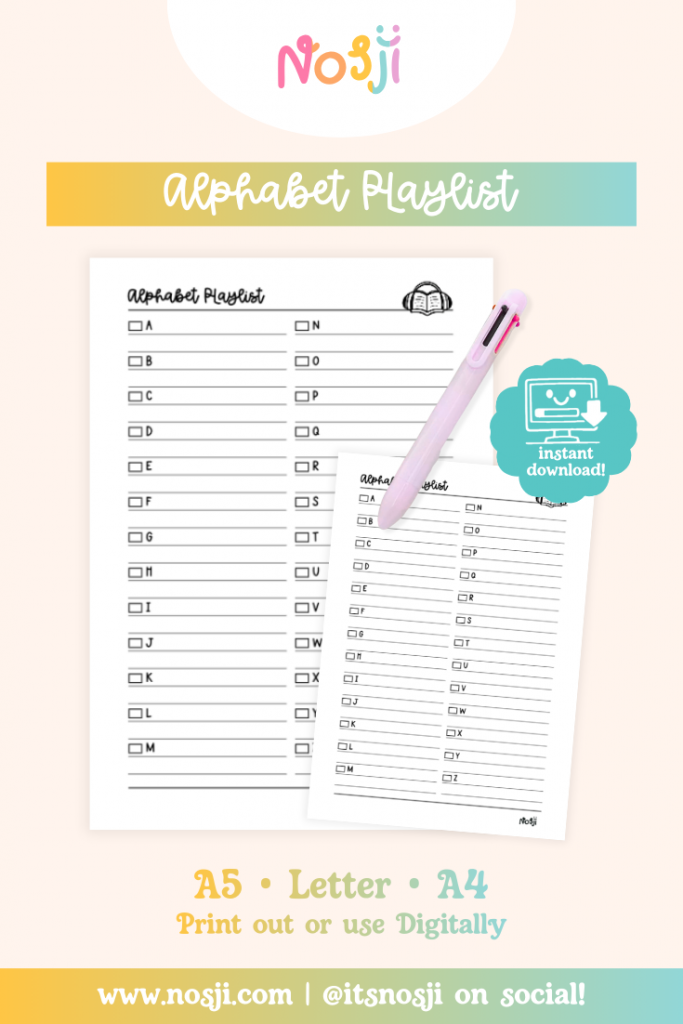 Alphabet Playlist Printable Journal Page • Planner Insert